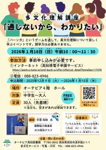 3. 【情報共有】多文化理解講座「通じないから、わかりたい」のお知らせ(オーテピア高知図書館)