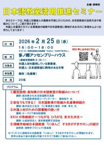 本セミナーでは、外国人労働者との業務を円滑に行うための、日本語教室の活用方法や取